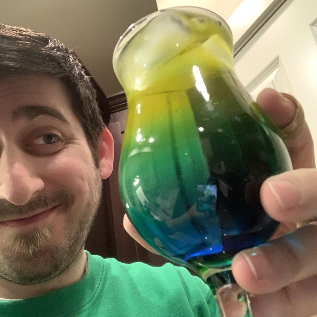 This community is amazing, and I’ve loved making the connections and friendships over the past few years, and getting my face on camera could only make that even better. I want to keep my video style the same, but the more “other” things I can do (for example, I recently mixed a drink with Kaiju Live in one of their auction shows), the better! I’m totally open to collaborations – last year, I did a bit of a crossover with one of my favorite cocktail channels, The Martini Shot (he does movie reviews and cocktails based on the movie he’s reviewing) for some Jurassic-themed drinks, and that was awesome.