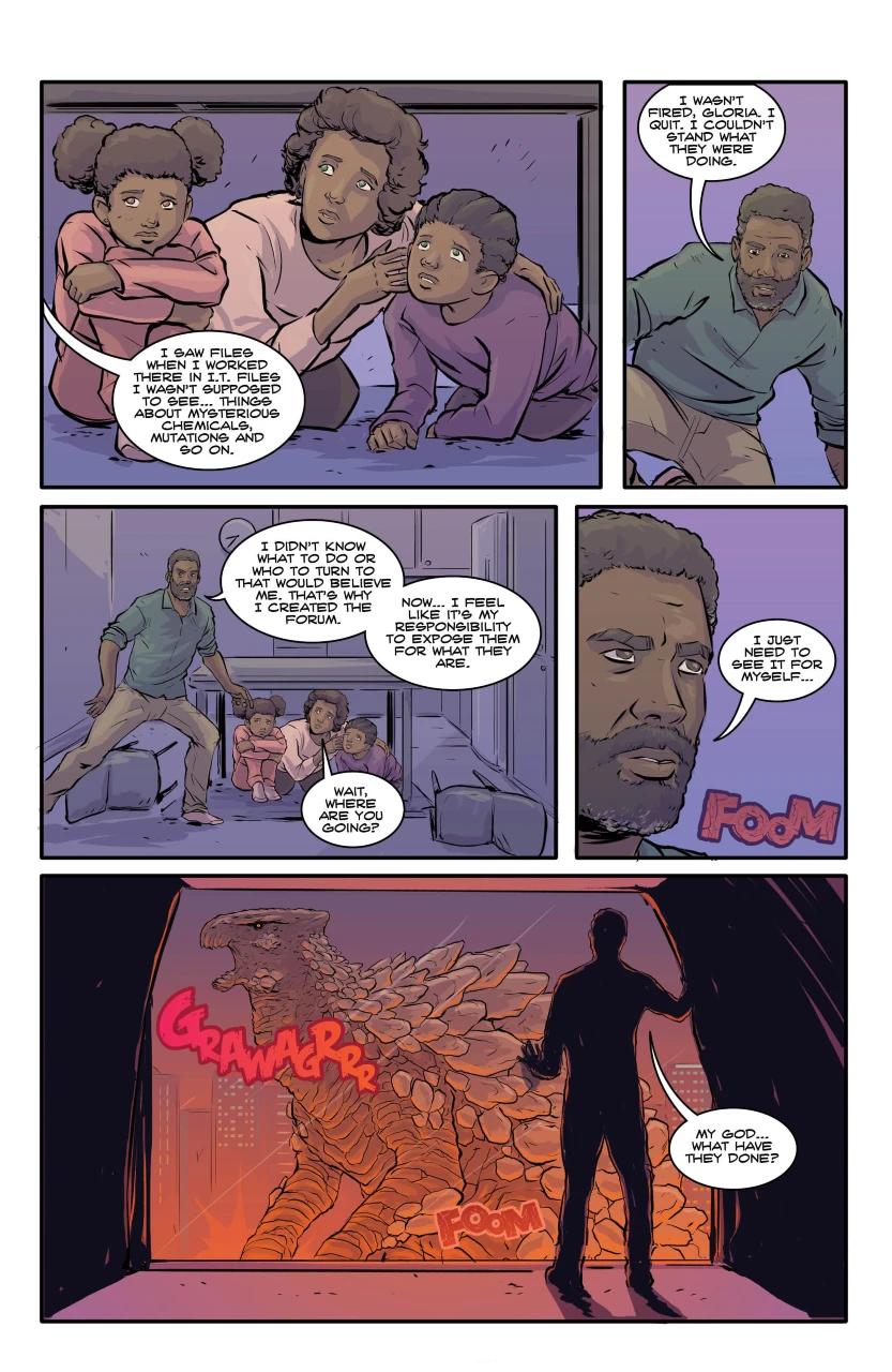 “Taryn Tolomka can’t stand corporations that threaten the health of the planet and has the scars to show it. When a mysterious chemical compound floods the ashfall badlands near her protest, it gives birth to a colossal problem. Enter Ganogwa, a huge dinosaur-like monster that erupts from the fossil-laden earth. Not long after the creature’s appearance, other giant mutations begin to arise, with chaos and mayhem in their wake. Violent combat seems inevitable. Taryn develops her own enigmatic problems that worries her friends. Can she discover the truth behind the monster’s genesis (and her own condition) before it’s too late?”