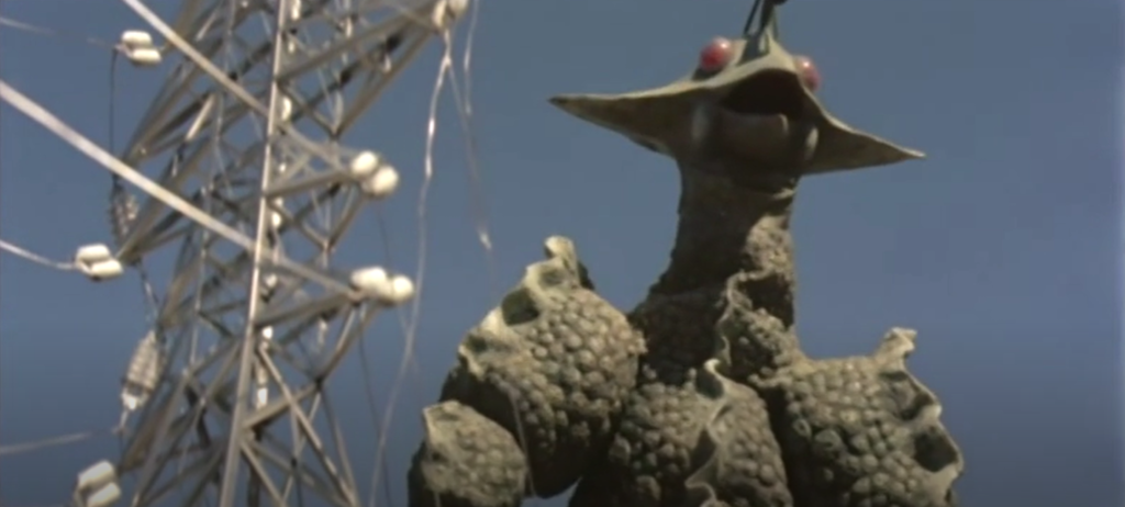 As the plot thickens we get a very similar starting point as Twenty Million Miles to Earth, released a decade prior in the West, with a space object slowly becoming a giant monster. Once he finally appears, the focal antagonistic Guilala oozes with personality. He frequently throws his hands around, almost as if he is flexing and showing off his power and size, like a kaiju-sized professional wrestler. To add to the exemplary portrayal of the creature, he loses some energy after being exposed to copious amounts of Guilalanium (Yes, that’s what it’s called.), and his arms begin to rag doll around. His corny design and portrayal make him a kaiju icon that has even made it into the shirt designs for fan conventions, such as G-FEST, and collectible figures by companies like Marmit. Guilala is one of the most original kaiju that I think has ever been put to screen, sporting a more alien design than most monsters, of which are frequently based on ordinary animals.