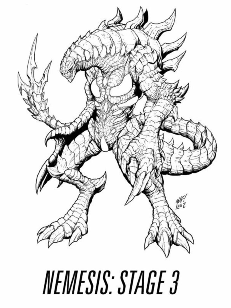 Fun fact! In a few AMAs, Robinson has stated that Nemesis’s design was inspired by the Xenomorph from Alien. You can actually see the influences in the armor and tail without directly ripping the design completely off. It’s super cool and iconic in its own right. There is also a cover for the comic book miniseries that depicts this more clearly.