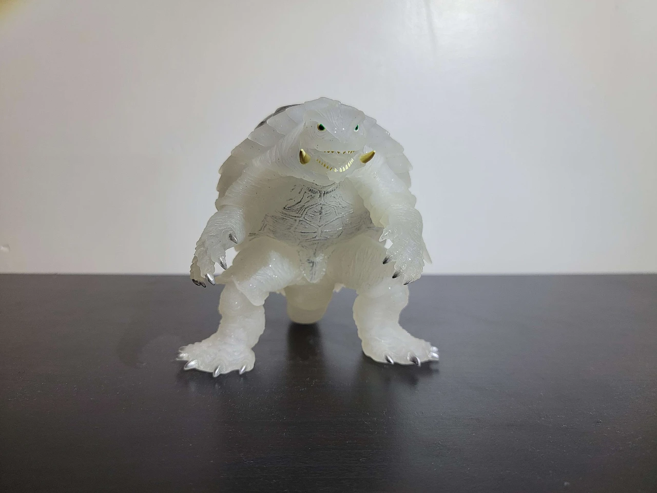 We all know with every new Toho/Daiei film, a Theater Exclusive is made to coincide with the film’s release. But, for the first time ever, Bandai gave us a new Theater Exclusive from a film that got a fresh new release! Gamera: Advent of Legion got a brand new run in theaters, in 4K HDR quality! With that new run, came a brand new Gamera Theater Exclusive! Sporting glitter with a gorgeous ice white, transparent vinyl makes this guy have a stark contrast compared to his other fiery Theater Exclusive.