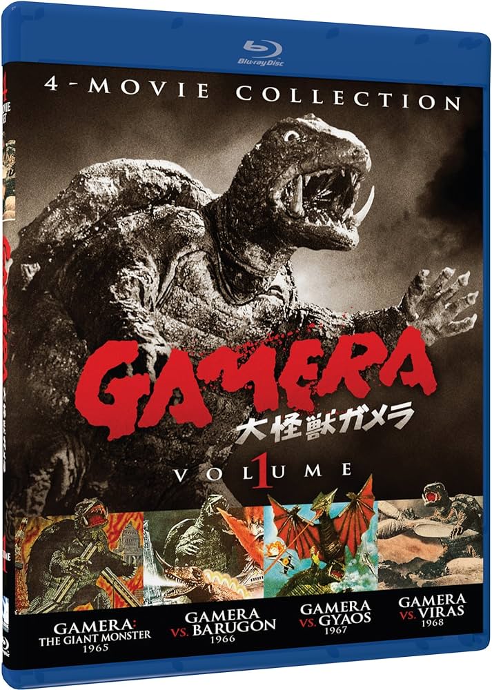 After the success of the Heisei trilogy on Blu-ray, Mill Creek picked up the rights to all the Shōwa era films and in 2014, released all of them on two Blu-ray volumes and the GAMERA LEGACY COLLECTION, which included eleven of the twelve films on four DVDs. The reason why it didn’t include all twelve movies was because at that time, Media Blasters still held the rights to GAMERA: THE BRAVE.