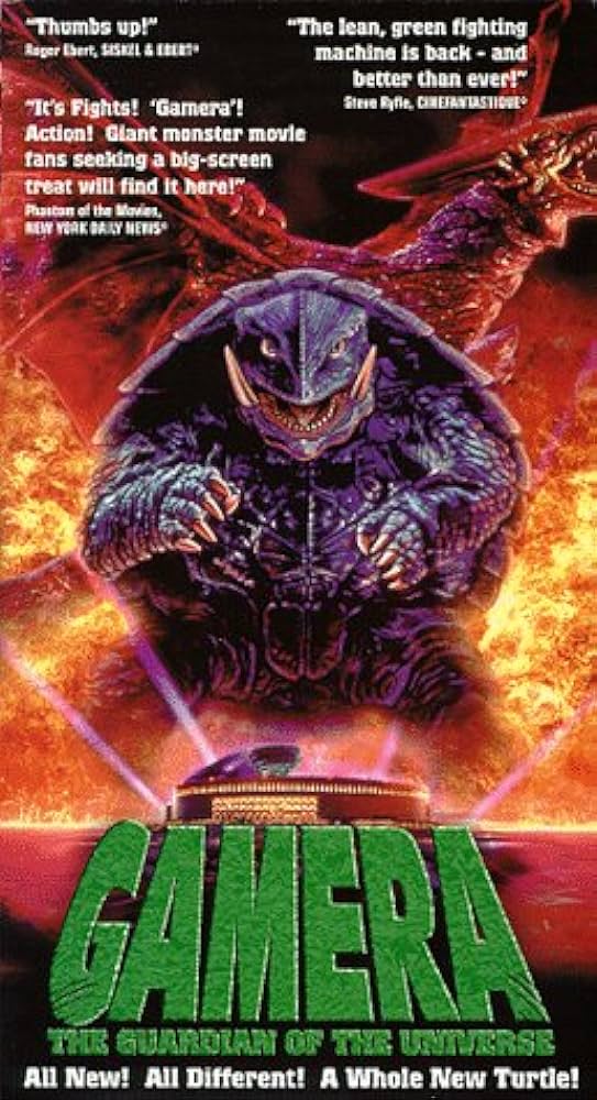 During and after, Gamera went back to television and gained cult status when all the Sandy Frank titles aired on the hit show, MYSTERY SCIENCE THEATER 3000. Until 1997, Gamera stayed on television as more of a comedy than a serious tokusatsu film franchise. In 1997, A.D. Vision released GAMERA: GUARDIAN OF THE UNIVERSE in the United States in select theaters and on VHS with a new dub made by A.D. Vision. Before the turn of the millennium, Gamera had one last push from Synapse Films who in 1999, released the original GAMERA, THE GIANT MONSTER and GAMERA VS. GURION (titled as GAMERA VS. GUILLON) on VHS with English subtitles and subsequently, GAMERA, THE GIANT MONSTER got a laserdisc release. Other titles such as: GAMERA VS. GURION (presumably under the title GAMERA VS. GUILLON), GAMERA VS. GYAOS, GAMERA VS. BARUGON, and GAMERA VS. ZIGRA were slated to come out on laserdisc but were cancelled for unknown reasons.