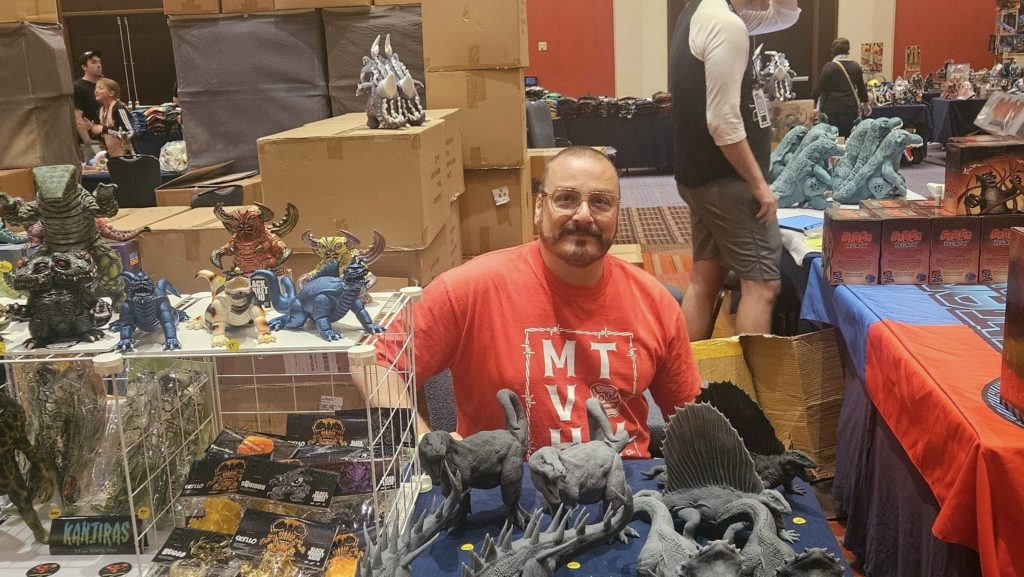 Kaiju Island featured artists and creators — Matt Frank & Bob Eggleton headlined the room, but there were so many other amazing creators present that were first timers. Dominick Navarra had fabulous pieces, hand-crafted from wood & metal, and perfectly encapsulated the awesomeness of the creators and artists in our community that do incredible work. Also amongst the lineup was Louisiana-based Tolzar Toys, who brought their original bayou-inspired kaiju sofubi lineup to the convention!