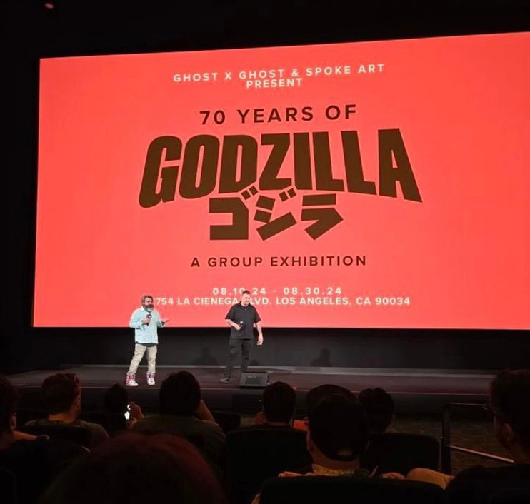 I work in production which means I spend a lot of time traveling. On these work trips, downtime is usually spent lazing around the hotel room or going out to eat on the company dime. But that wasn’t the case on my trip to Los Angeles this past weekend. I landed late Saturday afternoon and while on the way to the hotel, I was mindlessly scrolling through Instagram when I came across an ad for the 70 Years of Godzilla Group Exhibit presented by SpokeArt and GHOST X GHOST.