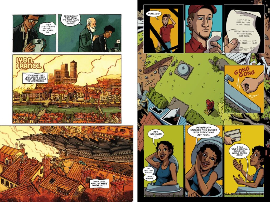 A few of those stories are very much taking that slice of life approach, and the monsters are kind of just there, looming in the background. And that’s where I’d say, like you mentioned earlier, I’ve worked on this through the pandemic, and I think that that was more of a direct influence on me, I think, than the movies I was watching in a lot of ways. That’s because I’m thinking to myself, wow, I hope this is the closest I ever experienced to what it would be like if there was a giant monster that had just parked itself in the middle of the city and everyone had to stay at home.