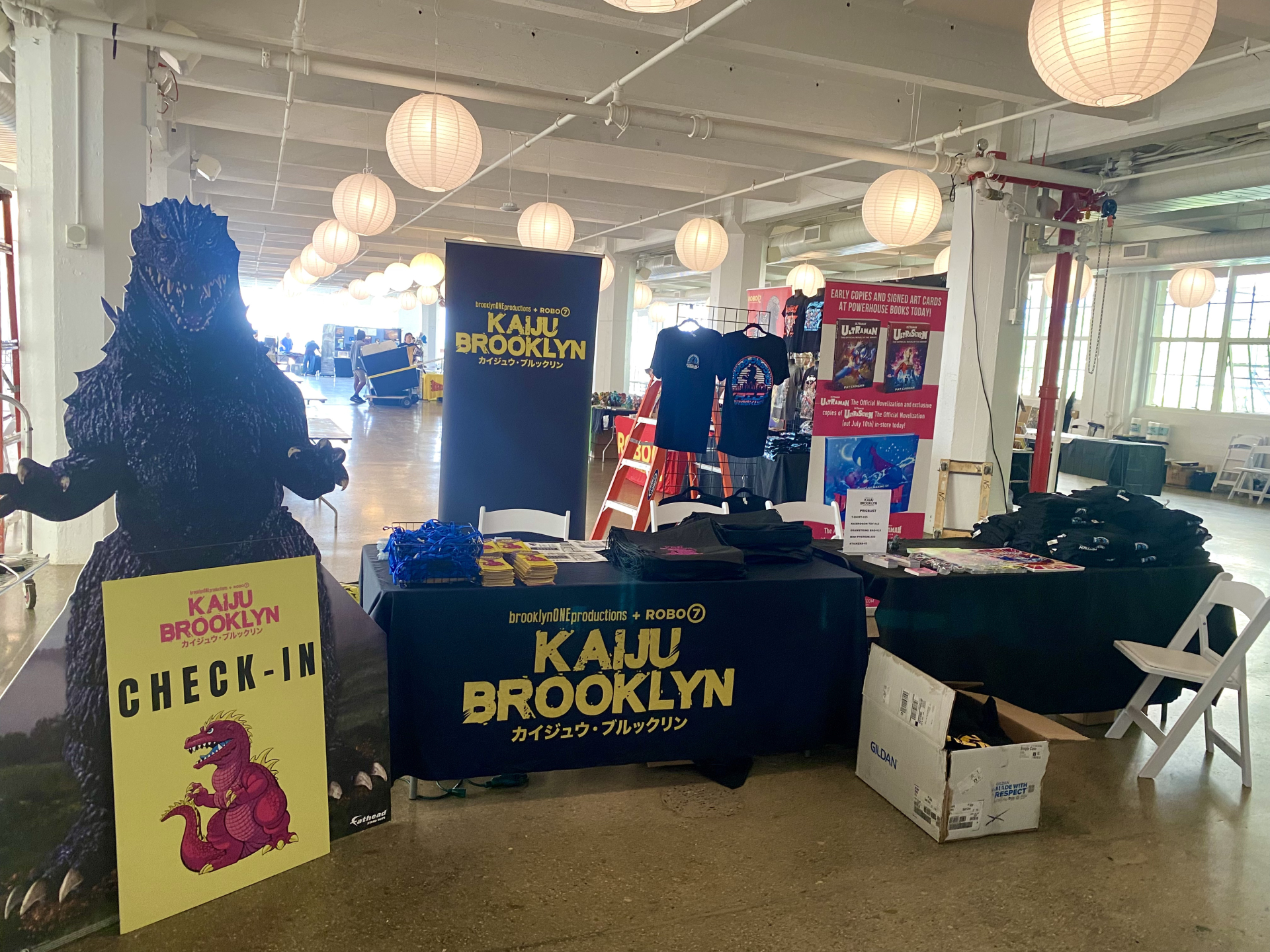 All Kaiju Brooklyn 3 (KB) programming was hosted at BrooklynONE Productions in Industry City’s Building 5, with additional events extending to nearby venues. Gun Hill Brewery hosted the Kaiju Lounge next door, while Powerhouse Books (Building 2) held the early release for the Ultraseven novelization. (The Ultraman novel was included as well, and they BOTH sold out within 2 hours of announcement!)