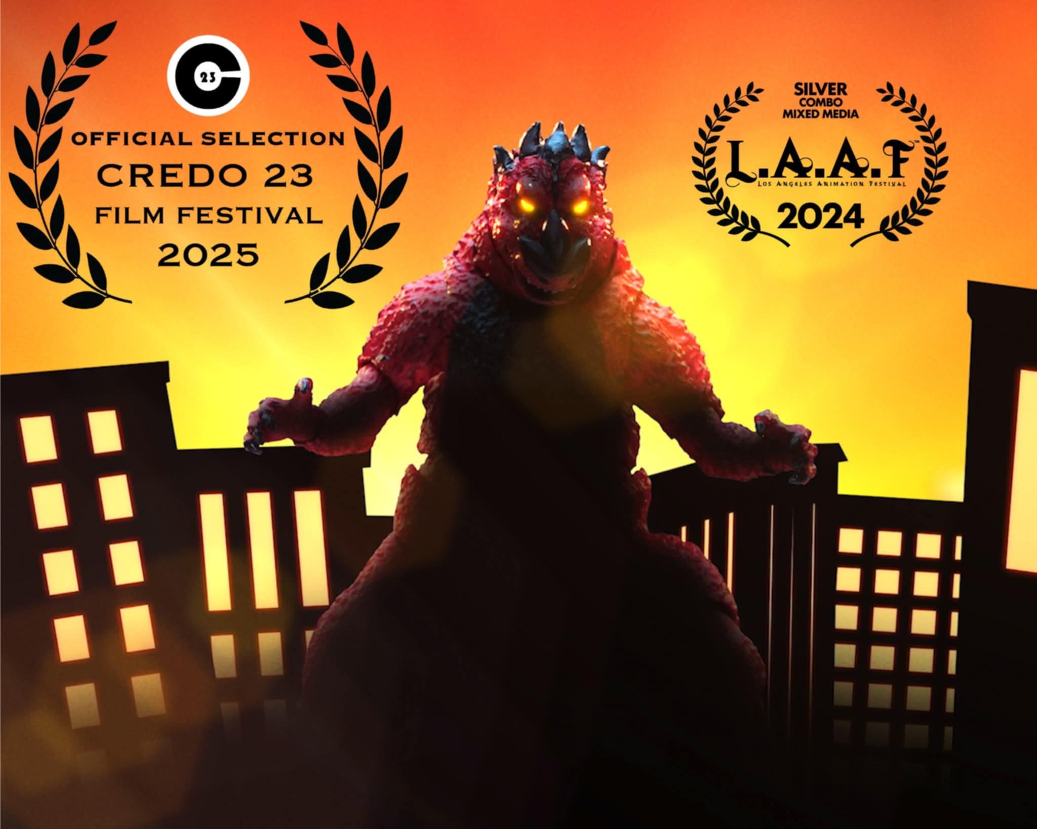 Kaiju Kid, written and directed by filmmaker Rusteen Honardoost, is an American stop-motion short film about a young kaiju rampaging through the city. It appears Godzilla-like, but is noticeably red in coloration, and perhaps has a more youthful attitude. It has played at various other film festivals to great praise, such as the Cleveland International Film Festival, The Los Angeles Animation Festival, and the Credo 23 Film Festival.