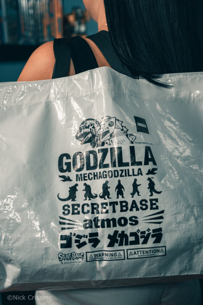 Below is our exclusive in-hand look at the figure alongside a special white loot bag, which features an awesome Godzilla vs. Mechagodzilla-inspired print. Each figure purchased will also include this bag as a free extra item, perfect for transporting your favorite collectibles. For more exclusive Godzilla items to enhance your collection, visit the Official Godzilla Store, or check out their official sofubi page for more great figures like this one.