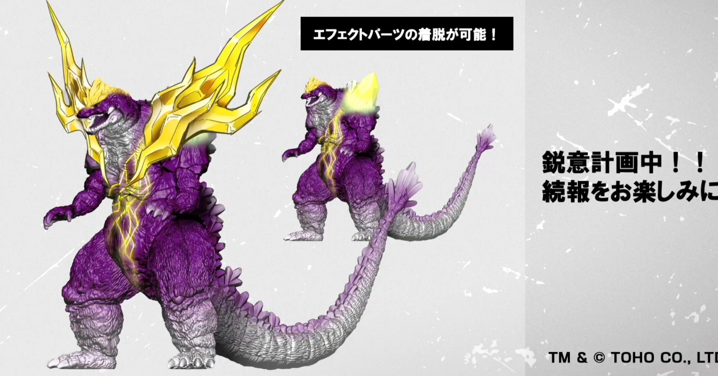 Bandai Namco’s newest toy line, GodziBurst, had some fun reveals at the show. Fans attending the show had the chance to be able to get a limited, meltdown-themed “special color Burning Godzilla,” as well as a new Godzilla Burst Imagination Set. This set contains a clear blue Mothra, red Kiryu, Godzilla, and an orange/yellow Hedorah figure. Additionally, a brand new SpaceGodzilla figure was revealed, reportedly based upon its original concept art from the 1994 film. This figure is noticeably purple with yellow highlights, packing an extra crystal armor accessory to give SpaceG a more exaggerated and regal look.