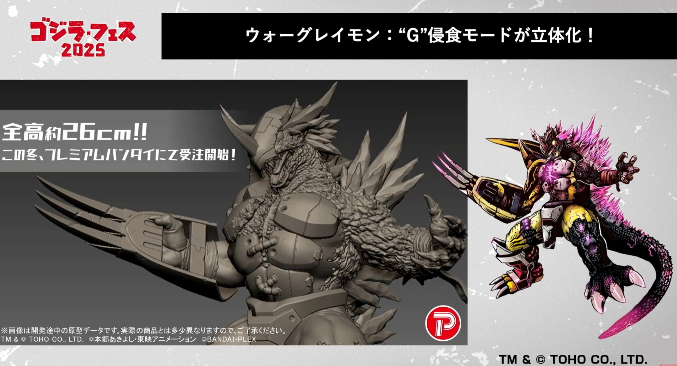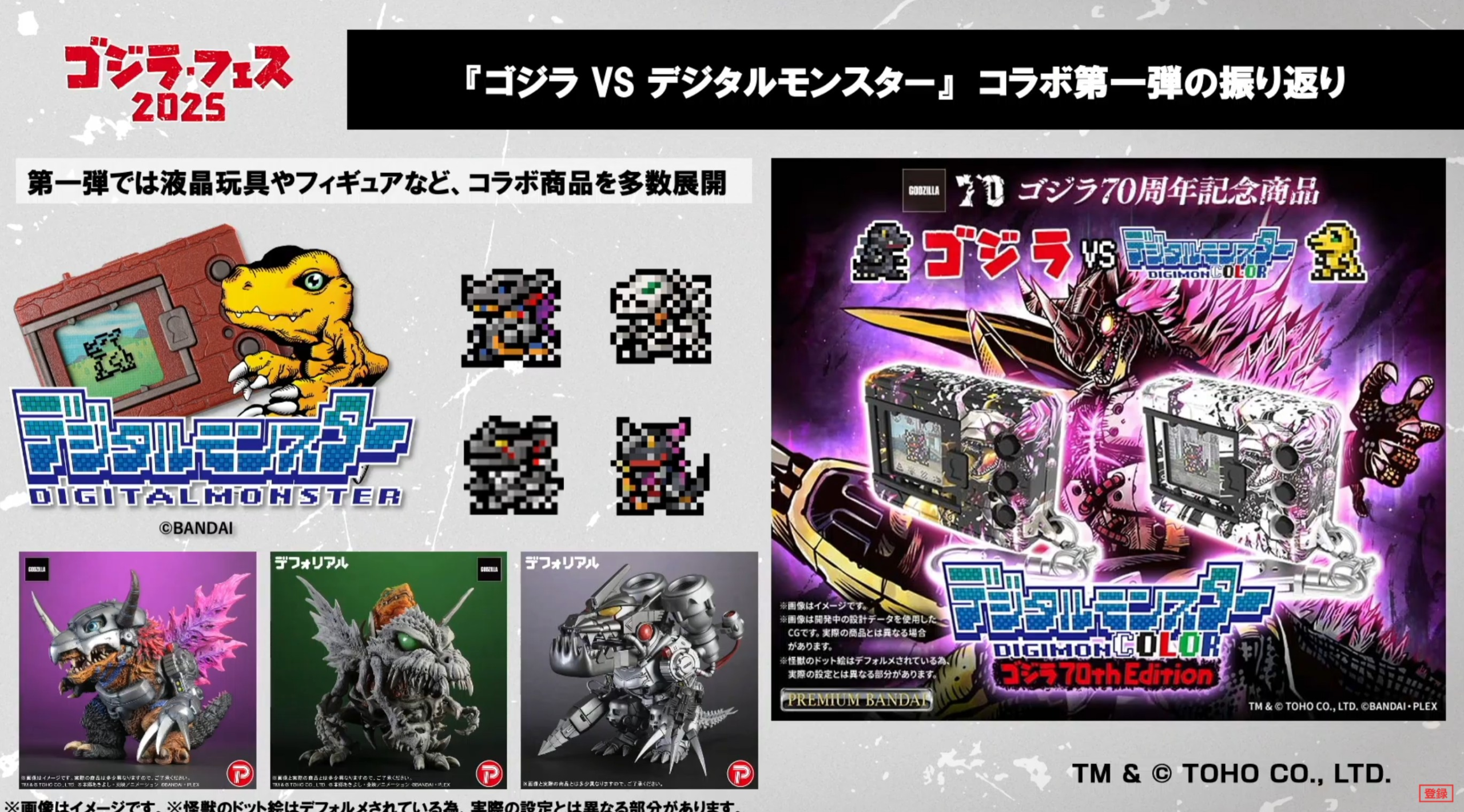 More figures from the crossover between Bandai Namco/Toei Animation and Toho have been revealed as part of their series of Digimon x Godzilla merchandise. These include DeForeal crossover figures such as G-Eroded MetalGreymon, G-Eroded SkullGreymon, and the Mugendramon MSF-3 Mode. Two Godzilla characters will be joining the roster of Digimon Pendulum Color: Burning Millennium Godzilla and Gattling Gigan from Bandai Namco’s GodziBurst toy line. A 26cm G-Eroded WarGreymon was also revealed and put on display at the show. Finally, we received an update on the Godzilla characters that would be appearing in Tamagotchi form in the aforementioned Digimon Pendulum Color: Godzilla 70th Edition. Needless to say, Digimon and Godzilla will likely cross over more in Japan with these figures and video game tie-ins going back and forth between the two franchises. Here’s hoping they do some cool things for the overseas Digimon fans soon!