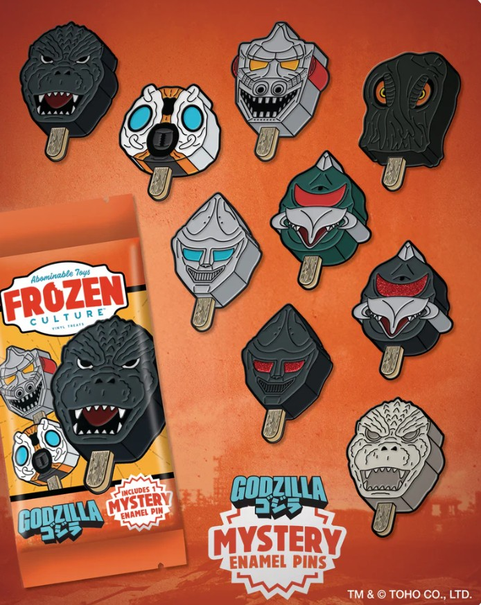 On Godzilla Day itself, AT revealed Series 1 of the Godzilla Frozen Culture Series, a nostalgic homage to the old freezer pops of famous film & TV characters you’d find at the ice cream van. For only 24 hours, anyone who bought an en tire case of this series had a chance to get an LE 255 Gold Godzilla Frozen Culture pin 3 pack. They were randomly inserted in qualifying orders at random, so if you received one in your order, consider yourself a lucky winner!
