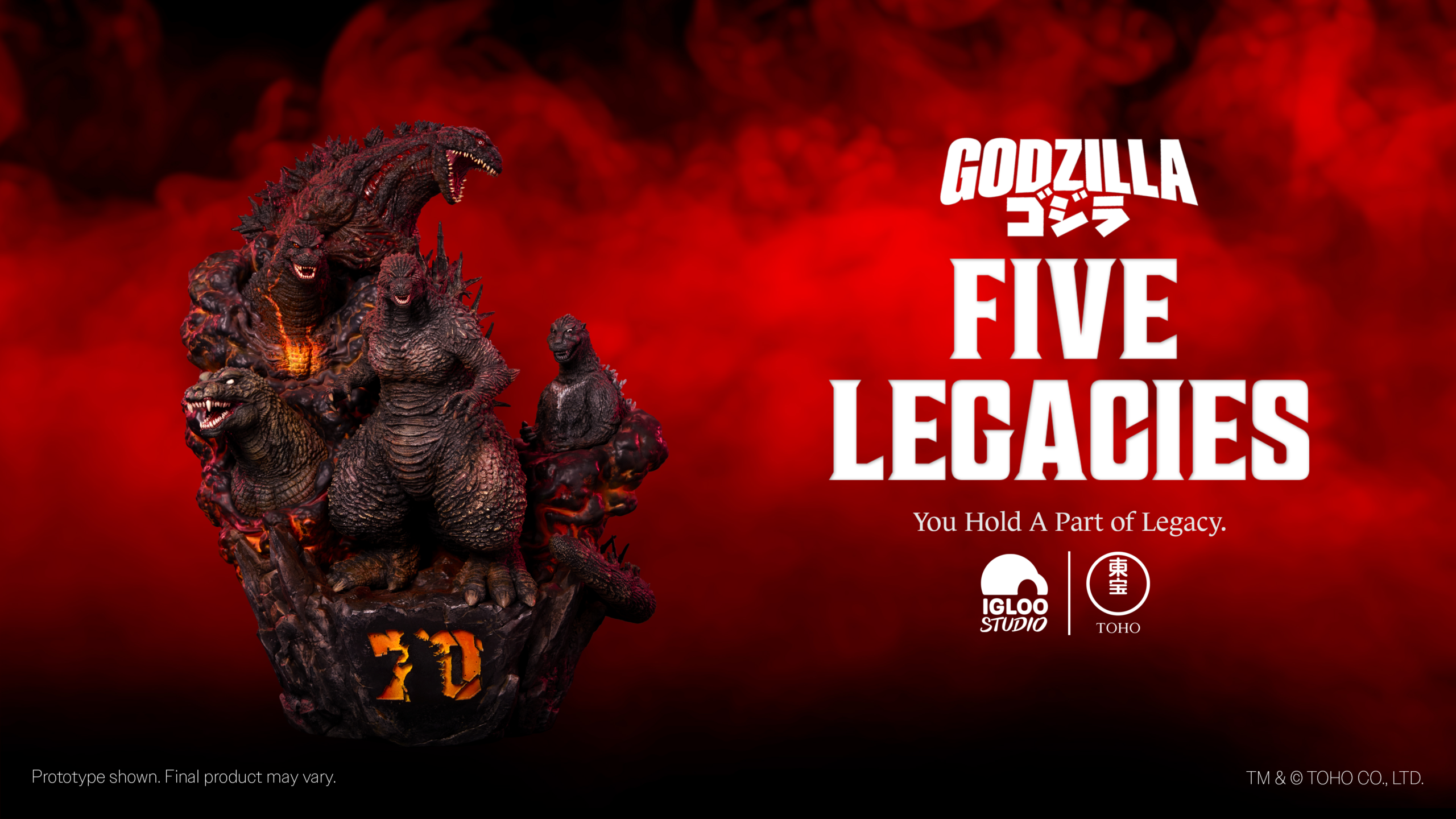 Kaiju fans may have seen them on the Godzilla Store during Godzilla Day, but now IGLOO Studio is set to debut their officially licensed Godzilla 70th Anniversary Collectible further upon the high-end market. Titled FIVE LEGACIES, the sculpture unites five different incarnations of the King of the Monsters from five iconic movies for the first time in history, including Godzilla (1954), Godzilla vs. Destoroyah (1995), Godzilla, Mothra, and King Ghidorah: Giant Monsters All-Out Attack (2001), Shin Godzilla (2016), and Godzilla Minus One (2023). This massive statue brings measures up to be 40cm tall, 32.5cm wide, with a total depth of 25cm.