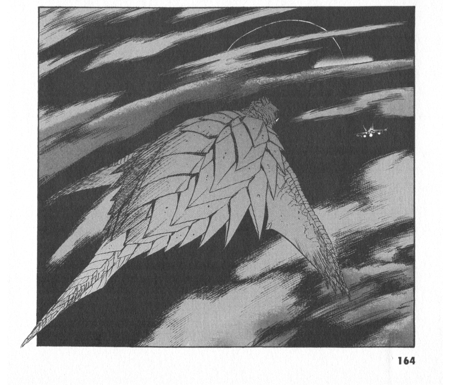 The detail of the combat sequences in this volume are also absolutely phenomenal. Kondo illustrates fantastic battles between not just our titular monsters, but the fights between Barugon and the self-defense forces are engagingly action packed. Most of the combat we see in this book is a well balanced mixture of Barugon fighting off the incredibly detailed and well drawn military craft that look anything but generic and the war the spined lizard wages with Gamera. To make it more of an enticing visual spectacle, we even get a fantastic introduction of Gamera’s final form in an absolutely brutal but breathtaking collection of panels where Gyaos appears to hunt fighter jets and is mercilessly taken down by our beloved friend to all children with Gamera’s bare teeth.