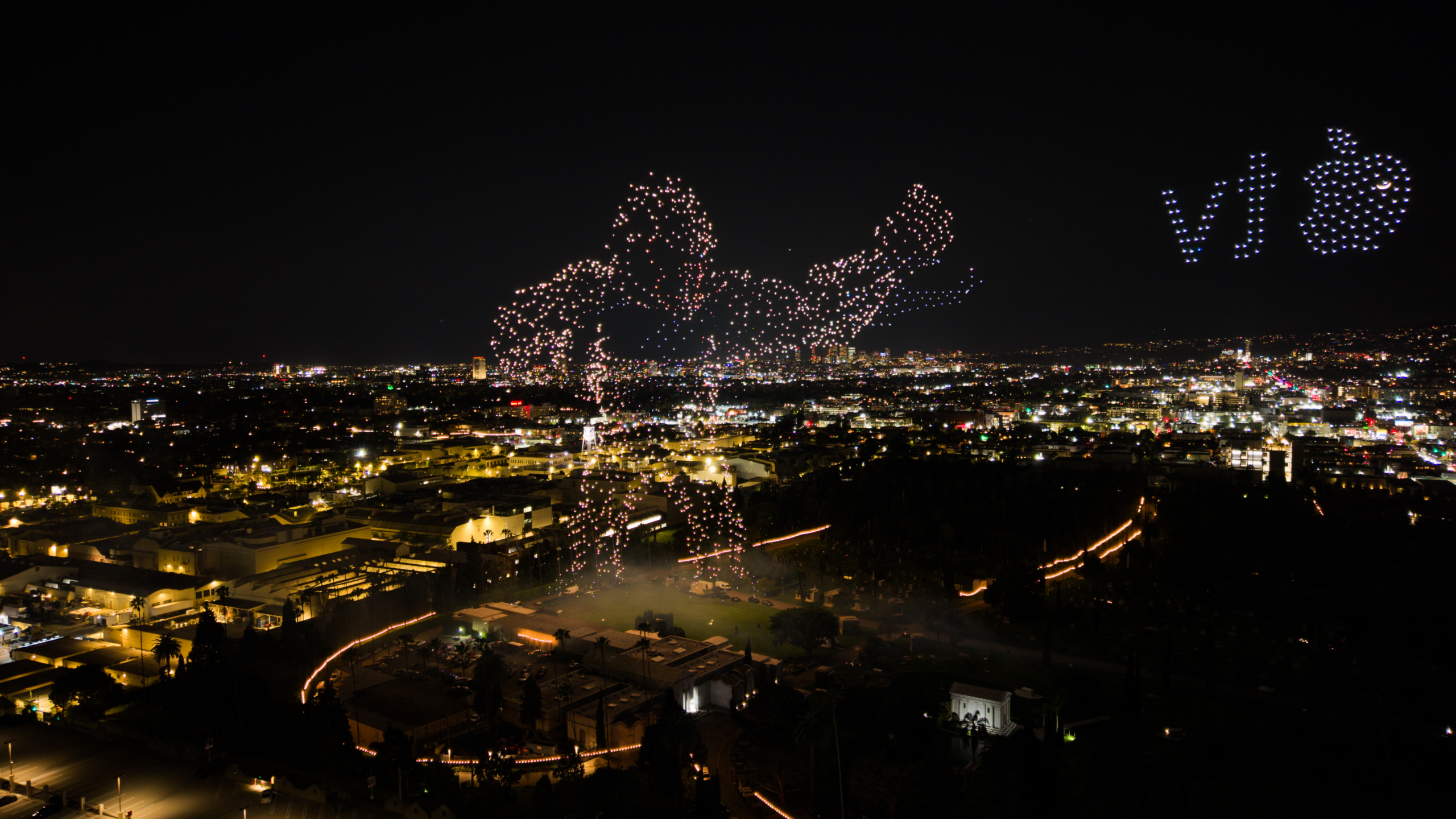 The drone show also integrated pyrodrones in the air and on the ground acting as visual effects for key moments, such as Godzilla blowing his destructive trademark atomic breath. Apple TV also added a comment about the immersion within the Los Angeles skyline, stating that the show “plays with the Hollywood landscape to situate Godzilla, Kong, and the newly introduced Titan X amidst the landscape to feel like they’ve truly taken over the city.”