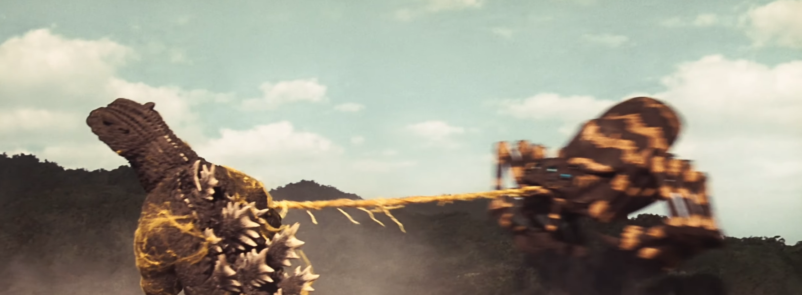 3. Kumonga being launched into the air by Godzilla