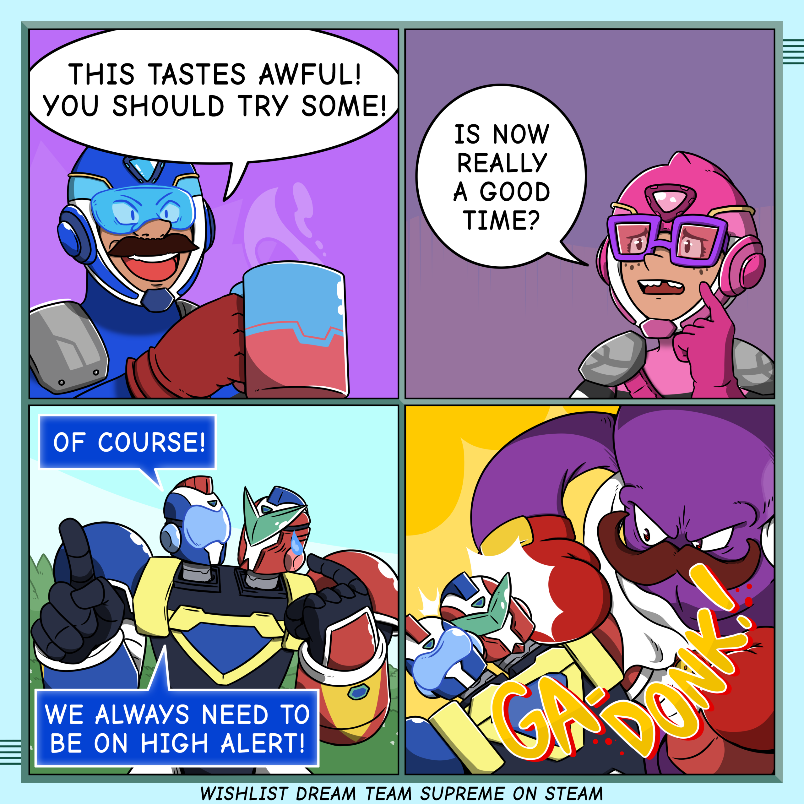 Get ready to engage! The developers behind upcoming indie mecha game Dream Team Supreme have announced a new comic series. On April 6th during New Zealand’s largest fan convention Armageddon Expo, the team behind the game unveiled the comic and the announcement that new episodes would debut exclusively on Discord. The book was done in collaboration with artist, creator, and local Wellington legend Matthew J Willis, best known as the creator of the 1000-episode comic Swords, which was referred to as “the most wholesome thing on the internet” by BBC News. His other works include the comic Stars and games such as Swords: Cut The Deck and Clusterduck.