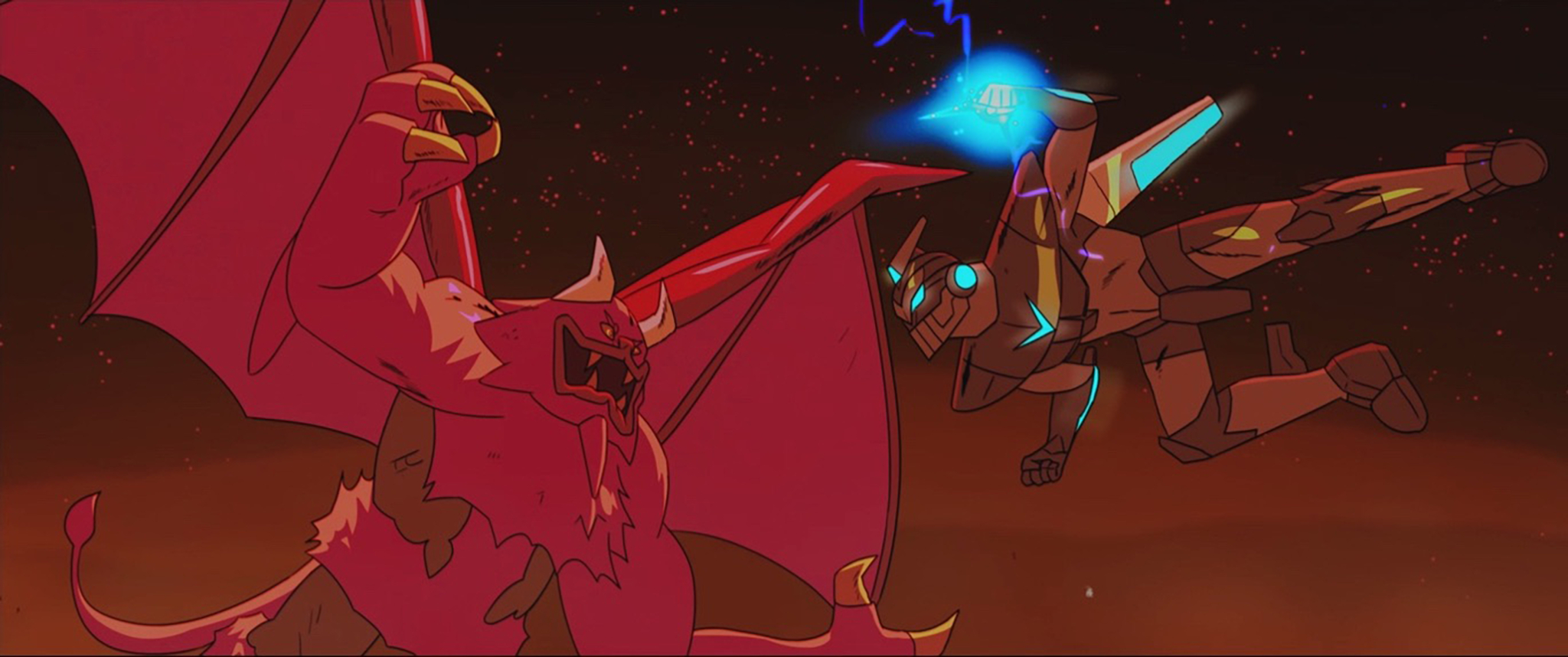 JL: There is very heavy symbolic conversation going on about mecha and kaiju being destinated to fight each other in the film, with two characters ultimately taking on forms of each character archetype. There is a third character that takes on a more spiritual form near the end of the film to complete what we’ll call a trinity. What does she represent?